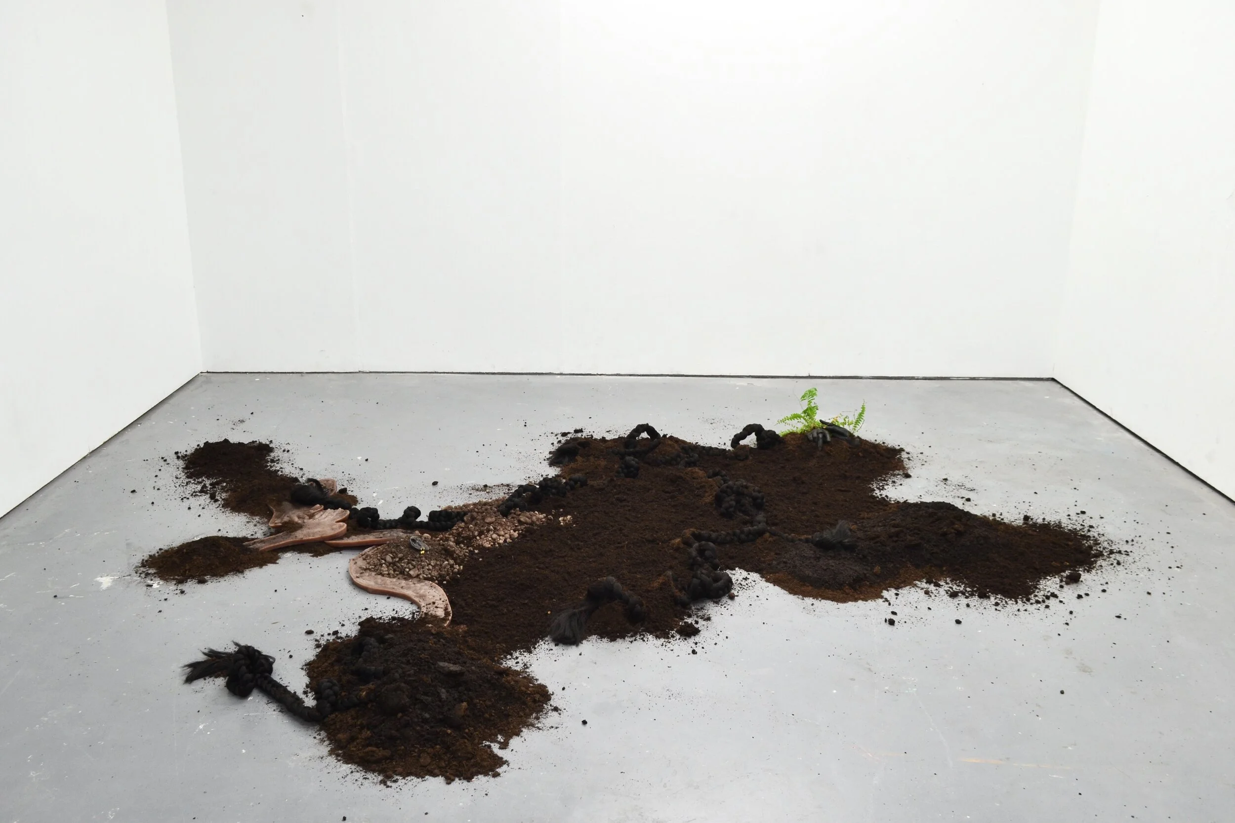 Presence responds to the emotional impact of experiences of Women of Colour being rendered visible/invisible andpresent/absent in everyday environments. The work explores the disruption and fragmented entity of the gendered and racialised body when presence is obstructed whilst also grounding the body to the space it inhabits. The work was created through impressing my physical body and bodies of other Women Of Colour onto beds of clay, to create moulds of these momentary interactions. The moulds were later filled to create wax casts then manipulated to appear in movement. The work also contains braided fake hair which coiled and unravelled around the installation, alongside soil which speaks of movement and displacement as it travels onto the wax casts and fake hair leaving traces of its debris.