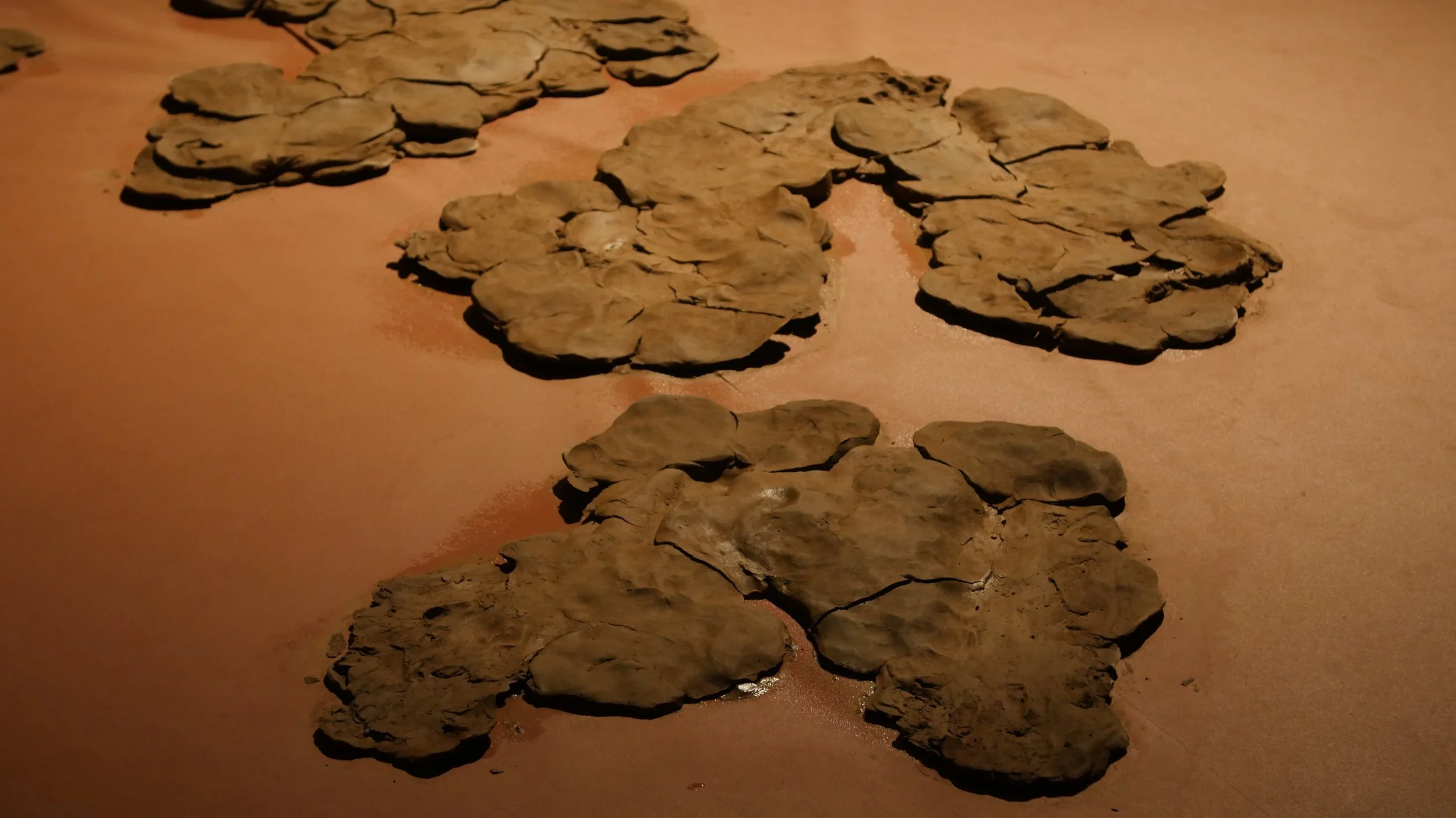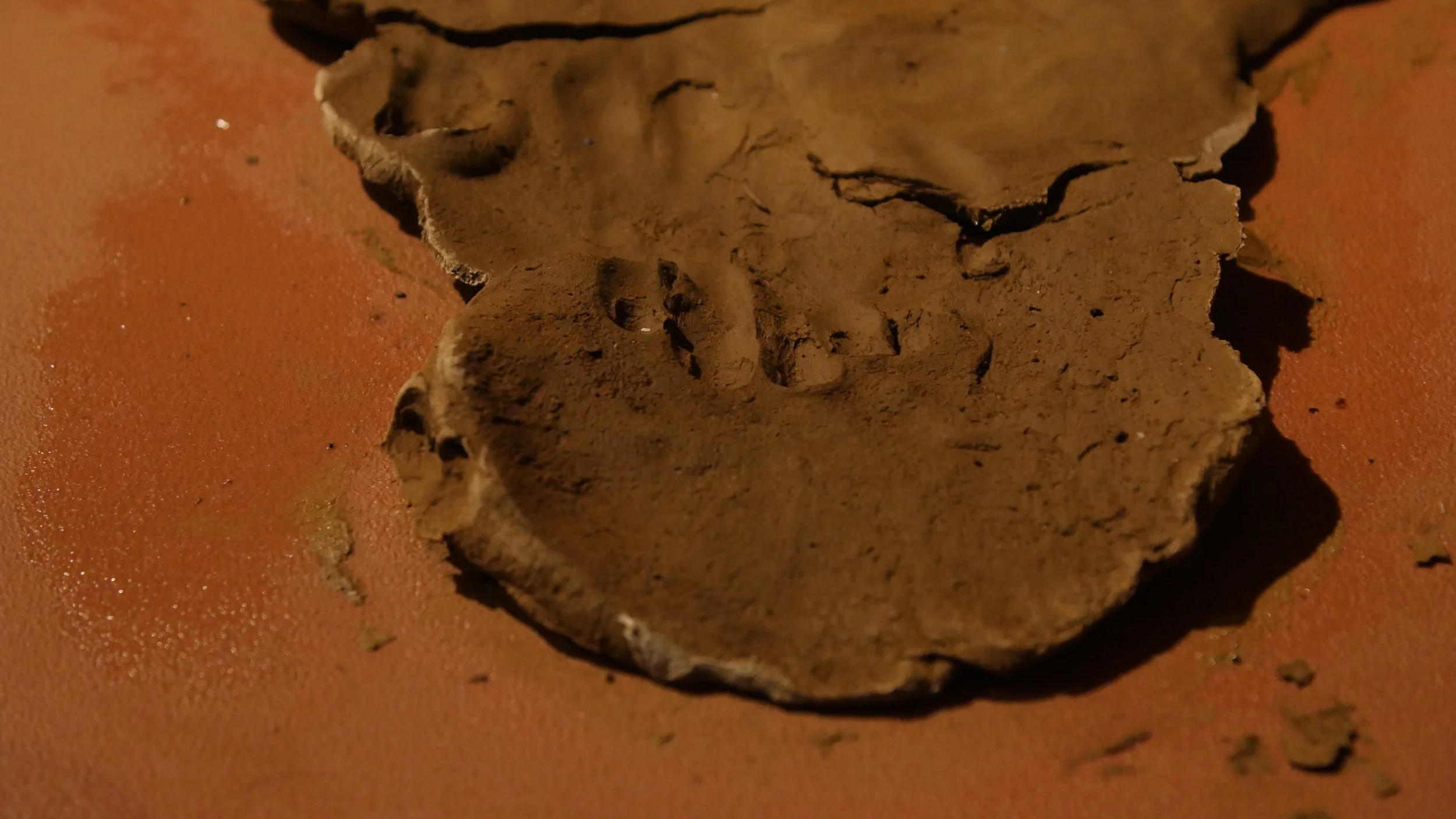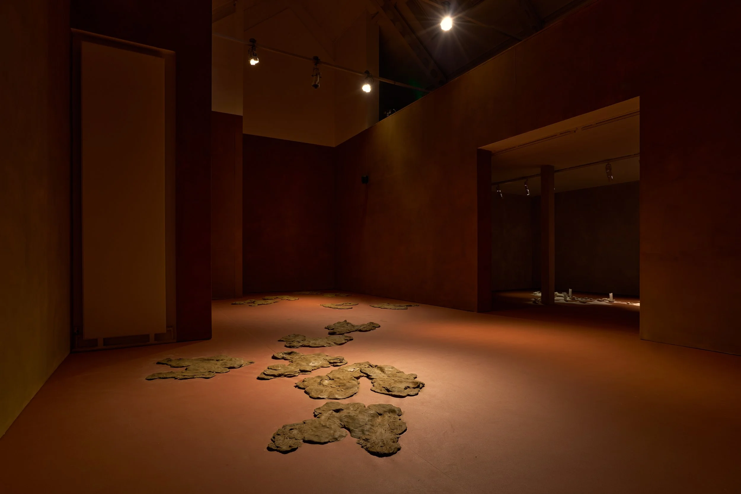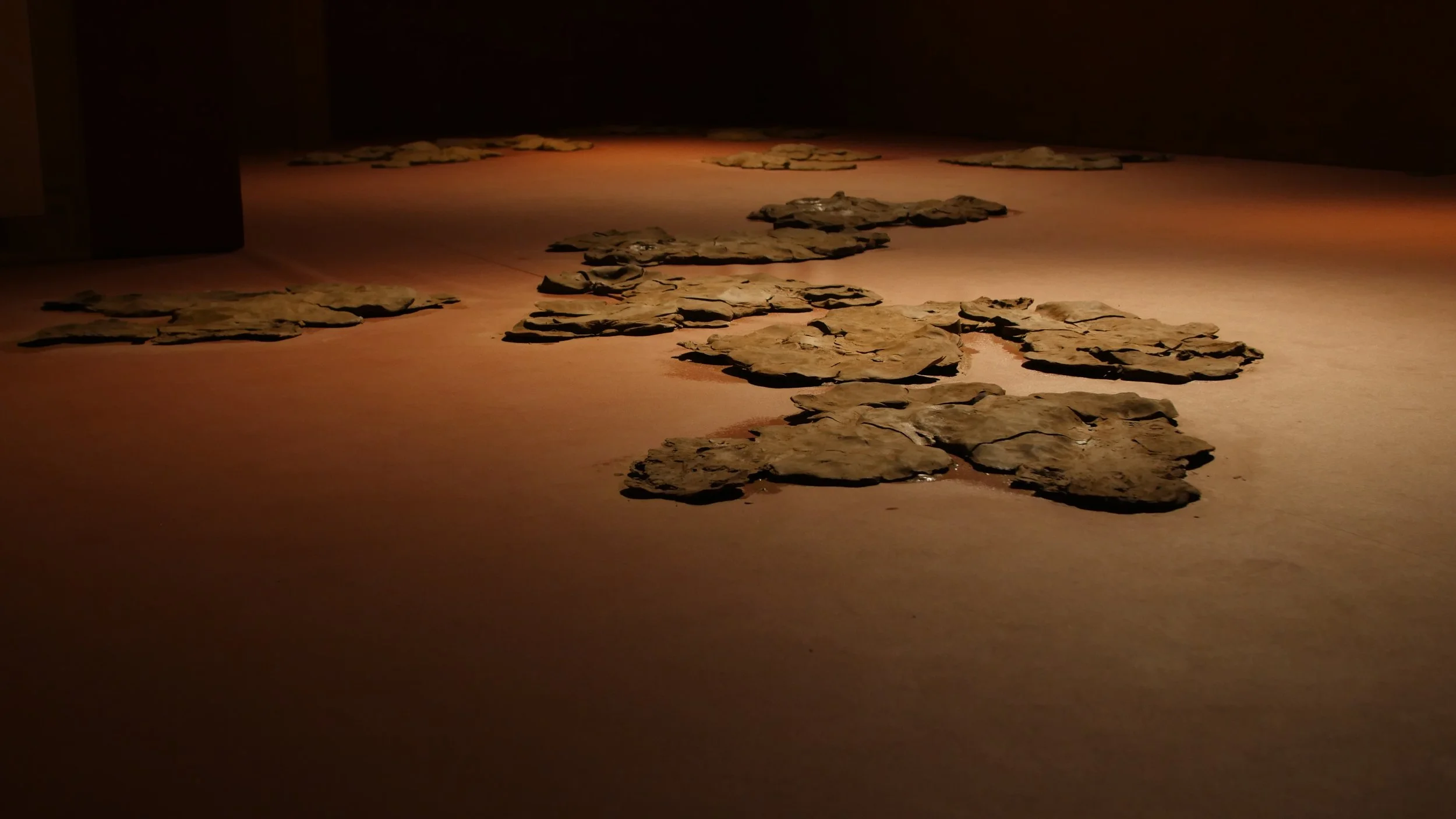 Formed through a series of solitary performances, ‘softening inherited knots’ is a durational, site-specific installations developed between my body and clay, tracing an embodied practices of uncovering how racial trauma is held and felt within the physical, spiritual, and ancestral body. Holding trace impressions of my body, the sculptural works made from raw London clay gathered from a local cemetery become sites/earthworks of ‘blackened knowledge’, forming a relational partnership between body and clay as the corporeal body of the earth. Adding to the earthworks throughout the duration of the exhibition, I returned to the installation as a continual practice of engagement between clay, breath, and the body. Through engaging with clay during its varied states of malleability and engaging the body through states of embodied breath and somatic practices, the earthworks conjure an intimate relationship between body and clay as co-collaborators in the active undoing of racial trauma, and conduits to intimate practices of grief-work and healing modalities.