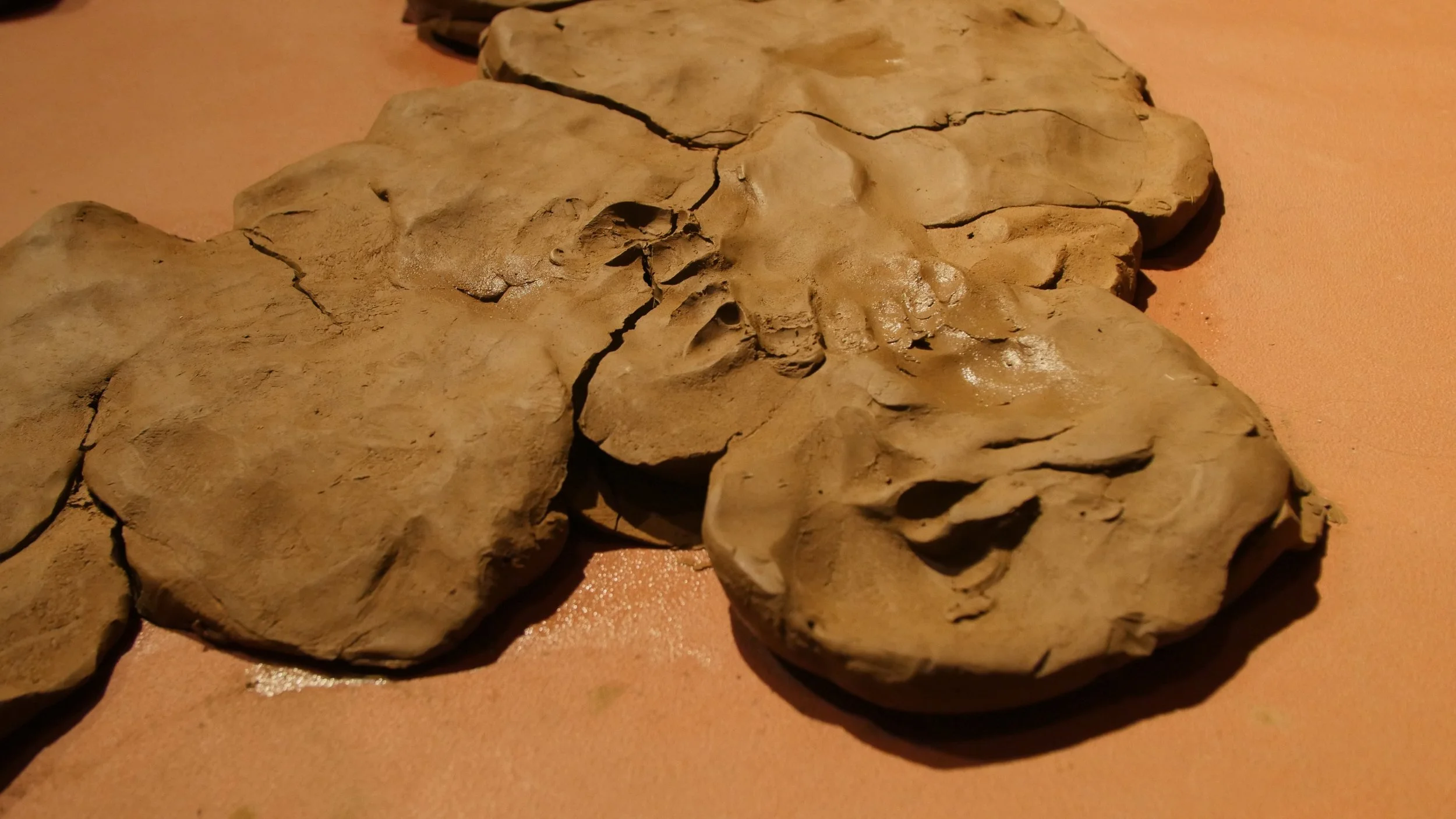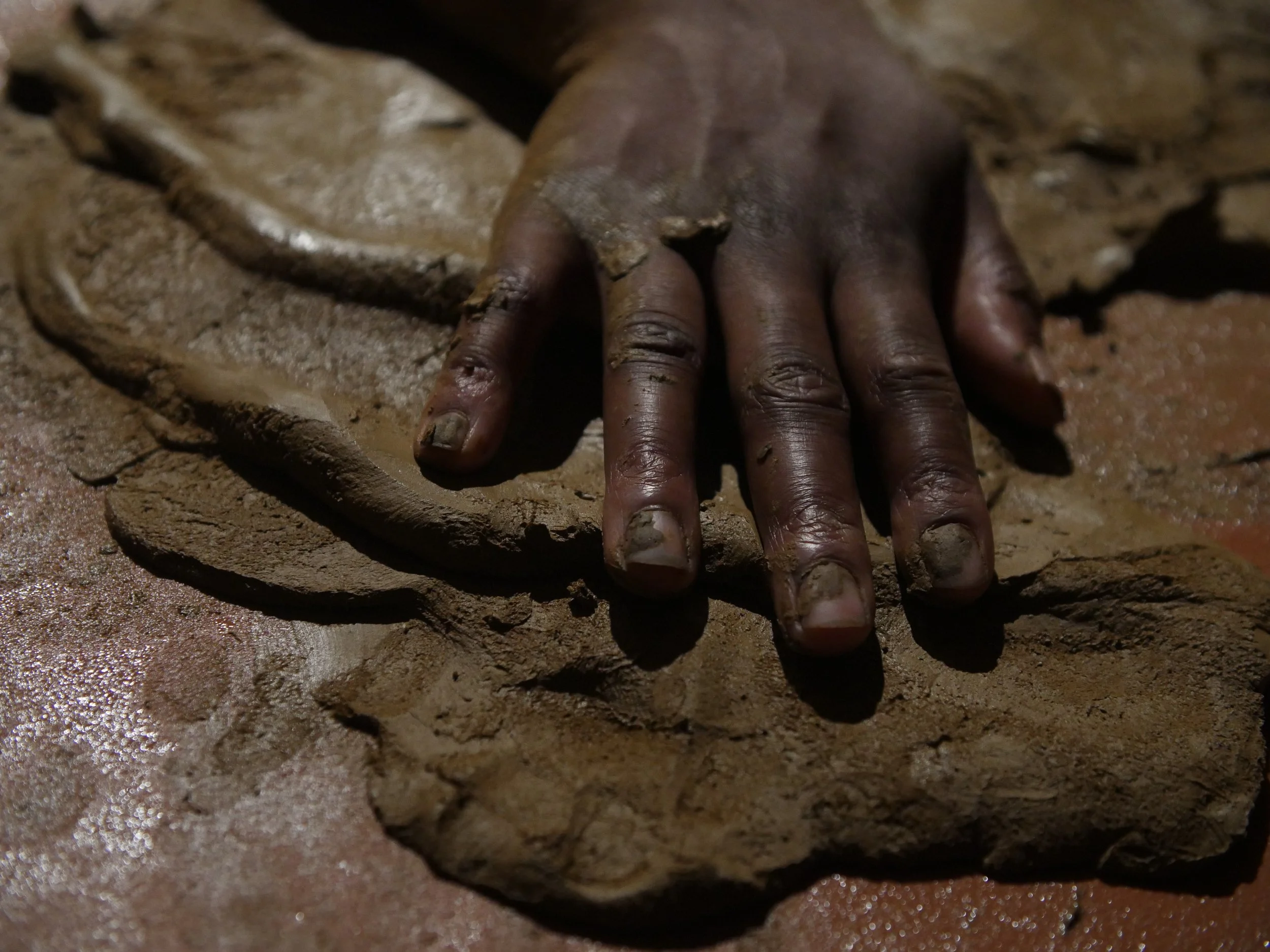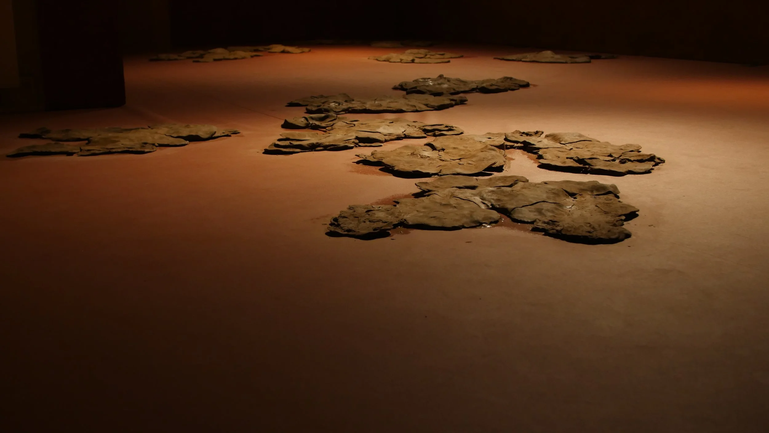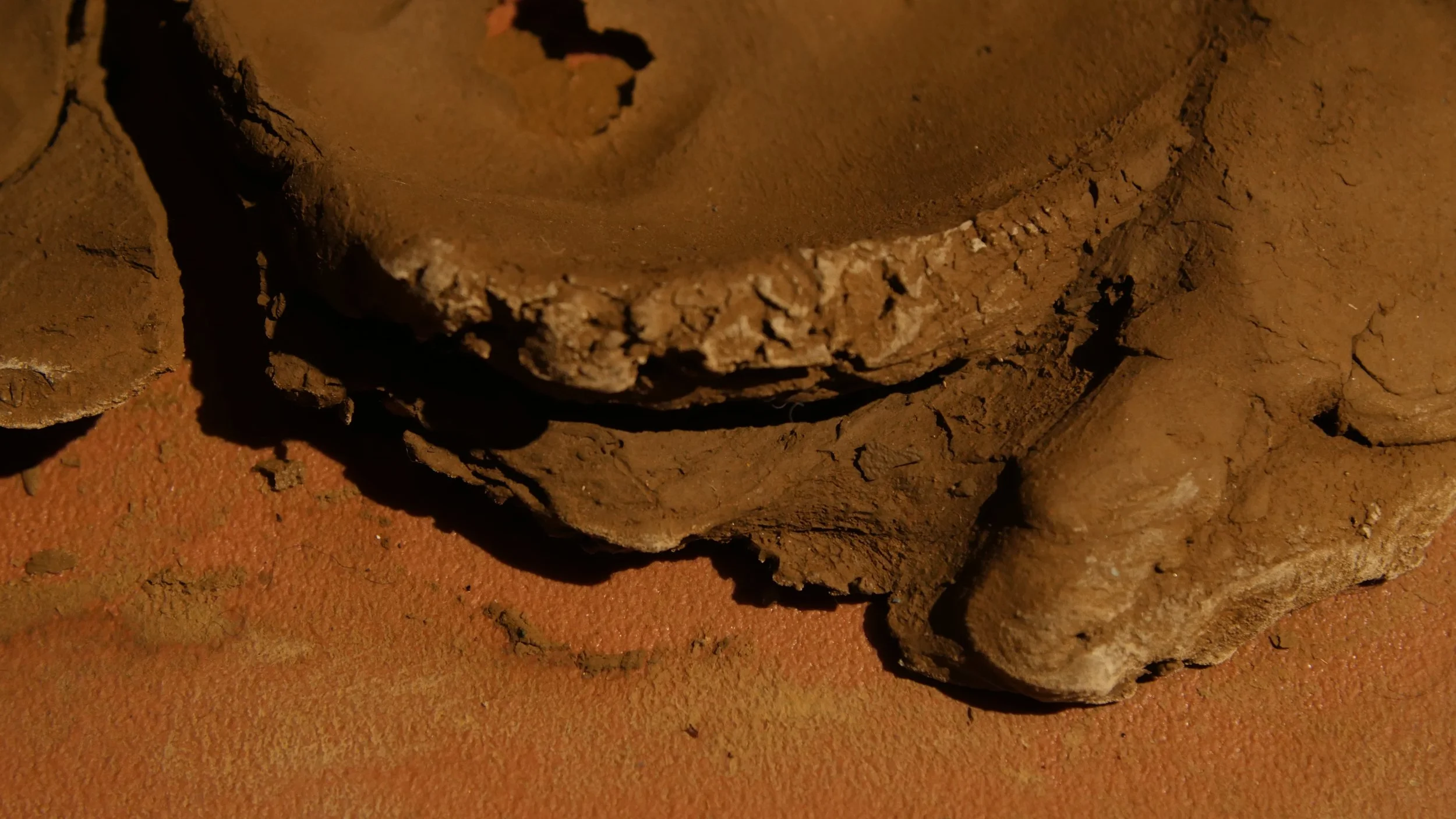 Formed through a series of solitary performances, ‘softening inherited knots’ is a durational, site-specific installations developed between my body and clay, tracing an embodied practices of uncovering how racial trauma is held and felt within the physical, spiritual, and ancestral body. Holding trace impressions of my body, the sculptural works made from raw London clay gathered from a local cemetery become sites/earthworks of ‘blackened knowledge’, forming a relational partnership between body and clay as the corporeal body of the earth. Adding to the earthworks throughout the duration of the exhibition, I returned to the installation as a continual practice of engagement between clay, breath, and the body. Through engaging with clay during its varied states of malleability and engaging the body through states of embodied breath and somatic practices, the earthworks conjure an intimate relationship between body and clay as co-collaborators in the active undoing of racial trauma, and conduits to intimate practices of grief-work and healing modalities.