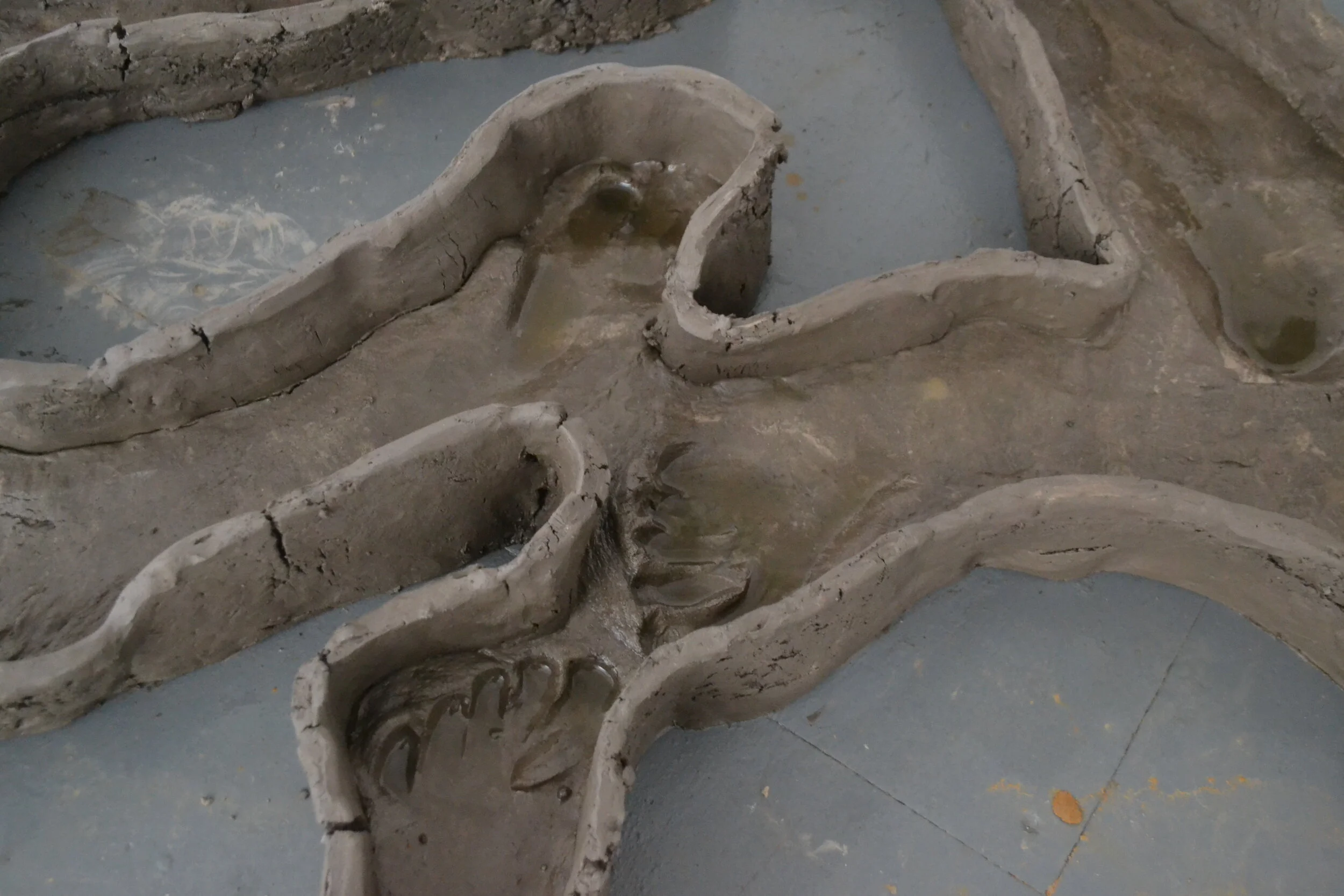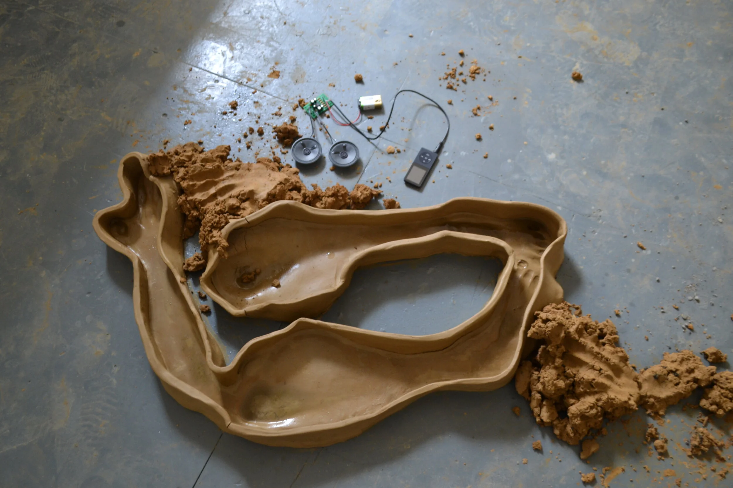 Through impressions and manipulations of my body onto beds of gathered clay ‘whose flesh you are’ is an evolving site specific work that examines the process of extraction that my body of colour and natural resource experience in colonial nature environments. Tactile engagements between my body and the clay evoke moments of restoration and repair from colonial trauma, with soundscapes that examine intimate moments of corporeal connections to land and moments of disabled presence experienced through colonial violence.